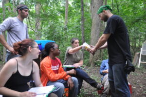 Photo by Katelyn HillmeyerThe activity that the students of the Fort St. Joseph Archaeological project are taking part in is “offering Semaa” (tobacco in Anishnaabemowin). The students are being led by fellow student Seth Allard who was sharing part of his Native American heritage. The essential condition for this action is receiving something significant and reciprocating with a gift of tobacco. Tobacco is a very important item for Ojibwa, and to offer tobacco when receiving a gift is to let the spirit of what you have taken know that you do not accept the gift lightly, but with gratefulness and an understanding that the gift is to be used accordingly and not wasted. We took plants, altered earth, and also gained knowledge through the data collected and at the same time altered the environment of the forest. We then acknowledged both the sacrifice of the plant and animal life we disturbed, as well as receipt of necessary data, which was then used to help us on our path of greater understanding. We were sacrificed for, and taught, by the site of Fort St. Joseph – in response, we showed our gratefulness and humility, promising our use of these gifts in a responsible manner.